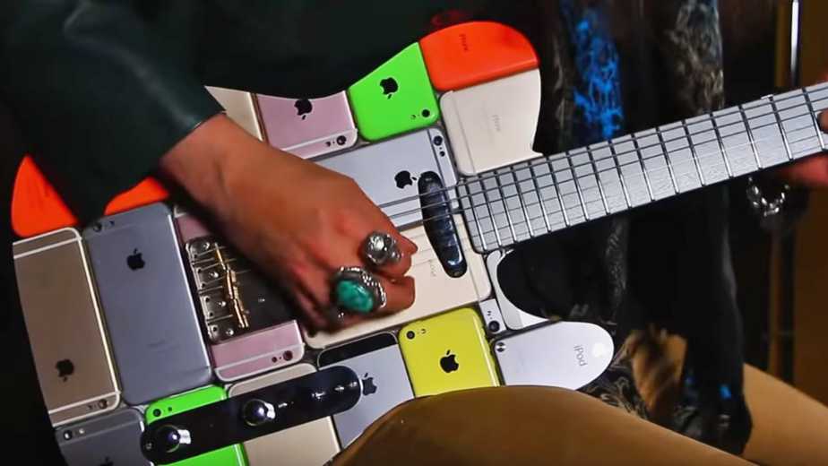 Ketebalan gitar dibuat dari sekitar empat iPhone yang semuanya direkatkan sebelum dihaluskan. Kemudian, ditambahkan balok kayu mahoni, gagang atau neck gaya Telecaster, serta sepasang pickup dan koil tunggal.