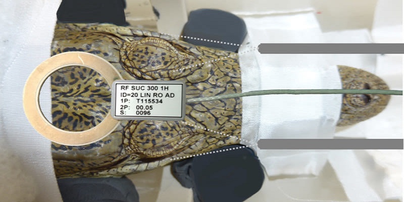 Sementara itu, untuk memastikan buaya tidak bergerak di mesin MRI, dan mencegah menggigit para ilmuwan, para peneliti membiusnya dan dan memplester moncong buaya.