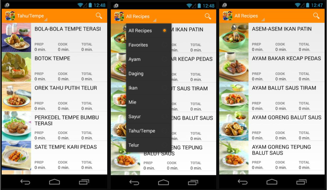 Mulai dari masakan berbahan dasar ayam, daging, ikan, dan lainnya tersedia dalam aplikasi ini. Selain menampilkan resep dan cara pengerjaan, apliaksi ini juga dapat menampilkan rata-rata waktu yang dibutuhkan untuk mengolah masakan tersebut.