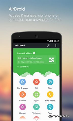 Airdroid memungkinkan Anda untuk memindah file dari PC ke smartphone atau sebaliknya secara wireless. Tapi untuk itu, smartphone Anda harus ada di jaringan WiFi yang sama dengan PC.