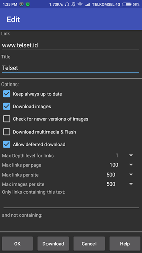 - Kemudian, masukkan link situs favorit Anda di bagian Link dan masukkan judul dari situs tersebut di bagian title. Selanjutnya tekan tombol Download.