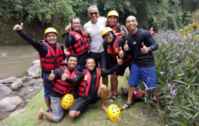 Obama mengisi liburannya di Bali pada Senin (26/06/2017) dengan menyusuri arus deras Sungai Ayung menggunakan perahu karet. Seperti dilaporkan Kompas.com, Obama datang bersama istrinya, Michelle, dan kedua putri mereka ke Puri Rafting yang terletak di Banjar Karangdalam Satu, Desa Bongkasa Pertiwi, Kabupaten Badung, Bali.