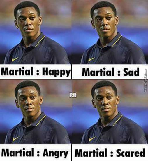 Meme terakhir ini berhubungan dengan penampilan wajah Martial. Meme ini menyindir penampilan wajahnya yang flat (datar) atau selalu sama saat sedang senang, takut, marah atau emosi.