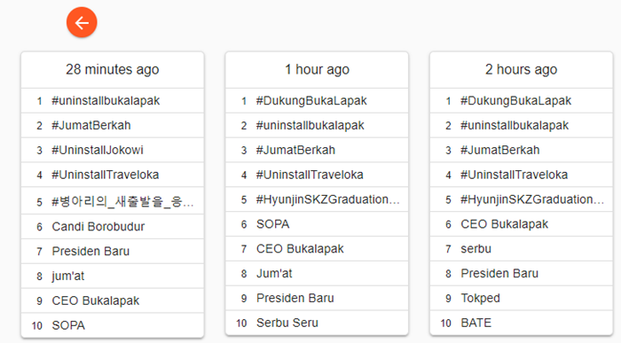 Berdasarkan pantuan Tim Telset.id dari Trends24 pada Jumat (15/02/2019), tagar tersebut perlahan-lahan merangkak naik. Saat ini sekitar pukul 10.44 WIB tagar #UninstallTraveloka berada di urutan keempat. Uniknya tiga tagar di atas juga merupakan provokasi dan dukungan warganet terhadap perusahaan e-commerce lain, yakni Bukalapak.