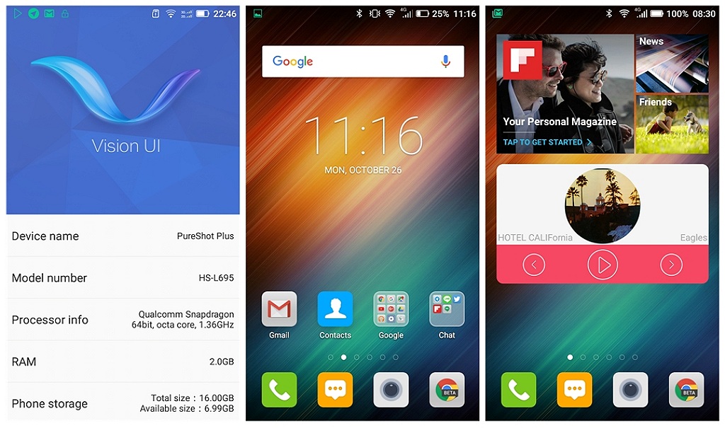 Berbasis OS Android Lollipop 5.0.2, Purseshot+ memilki skin UI diatasnya yang dinamai Vision UI yang sekarang sudah pada tahap versi 2.0. Sama dengan kebanyakan smartphone brand Tiongkok, UI ini menampilkan semua aplikasi di halaman depan, tidak seperti basis OS Android asli yang memisahkan aplikasi antara bagian display dengan app drawer.