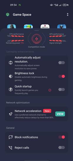 Sama seperti seri OS sebelumnya, Game Space di ColorOS 11 memiliki opsi bernama Competition Mode untuk menambah experience gaming dari pengguna dengan meningkatkan kemampuan ponsel.