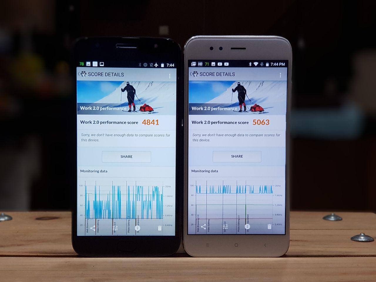 Benchmark ini betul-betul hanya mengukur kemampuan CPU prosesor saja, tanpa memperhatikan kelengkapan SoC lainnya. Karena keduanya menggunakan chipset Snapdragon 625, salah satu chipset terbaik dari Qualcomm yang seimbang akan penggunaan daya dan komputasi yang bagus, hasilnya juga mirip.