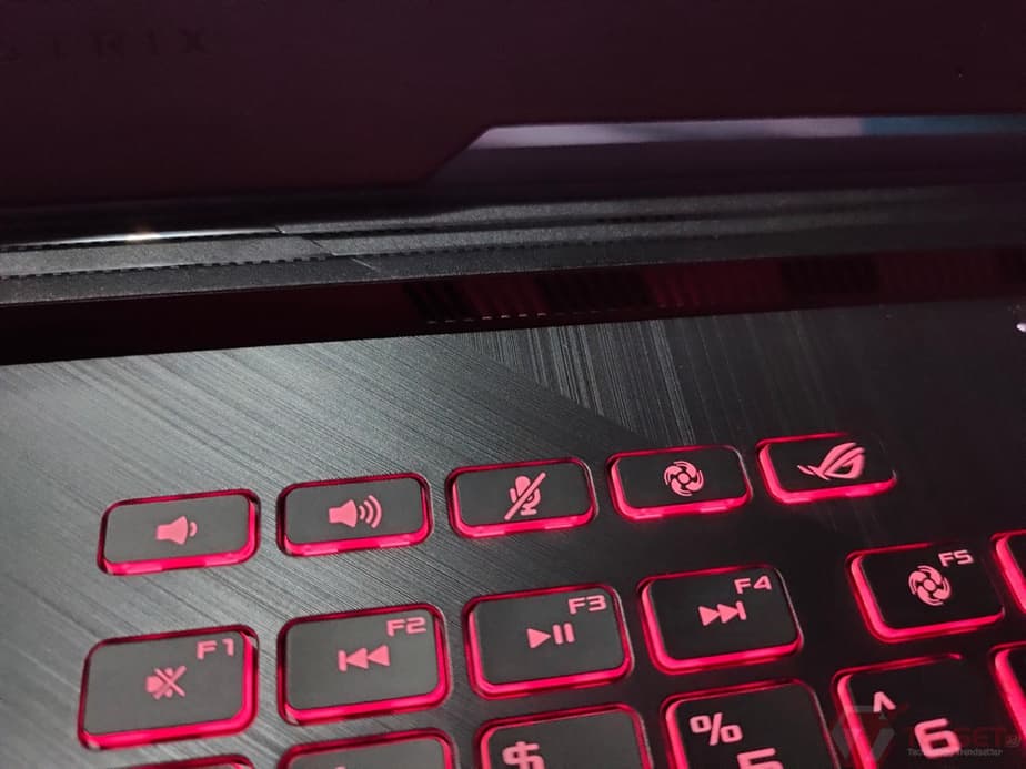 Di bagian atas, terdapat tombol-tombol shortcut khusus untuk fitur pada ROG G Strix G512L, yaitu tombol volume, microphone, Armory Crate dan juga tombol performance mode.