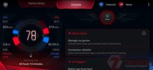 Pada menu console, pengguna dapat menu-menu lainnya seperti XMode, Game Genie, Air Trigger, Fan Speed, dan System Lighting.