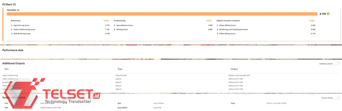 Sedangkan untuk PCMark, hasil benchmark yang cukup tinggi membuat PC ini pun cocok digunakan untuk bekerja sehari-hari. Mempersiapkan slide presentasi, menghitung dan membuat grafik rumit di Microsoft Excel, mengetik banyak dokumen di Microsoft Word, dan pekerjaan lainnya bisa dijalankan dengan maksimal.
