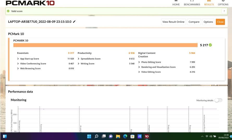 Kinerja single core ataupun multi-core AMD Ryzen 7 5800H yang digunakan oleh ASUS Vivobook Pro 14 OLED cukup memuaskan. Performanya lebih tinggi dibanding AMD Ryzen 7 5800U dan kecepatan turbo maksimum 8 core-nya hanya dibatasi di 3,4GHz sementara Ryzen 7 5800H bisa mencapai 3,8GHz.