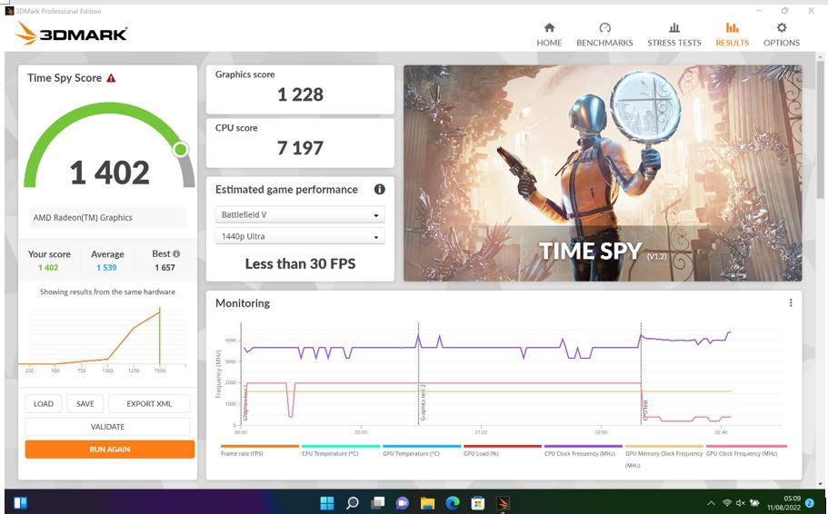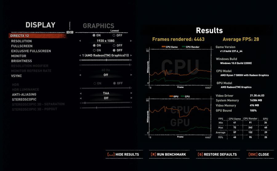 Hal yang sama berlaku ketika bermain game, performa integrated Radeon Graphics Ryzen 7 5800H termasuk lumayan. Digunakan untuk bermain game Shadow of the Tomb Raider yang lumayan berat, di resolusi Full HD dengan setting rata kiri, Vivobook Pro 14 OLED hanya sanggup menghasilkan frame-rate yang kurang playable, yakni 28fps saja.