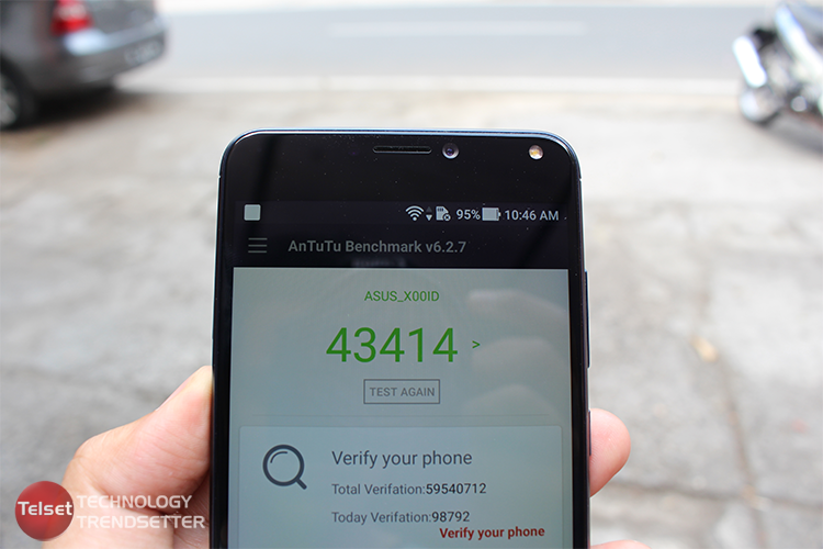 Tak puas, kami pun menggunakan AnTuTu Benchark untuk menguji kemampuan dari ZenFone 4 Max Pro. Hasilnya, smartphone ini menghasilkan skor 43.414 poin. Jika boleh dibandingkan dengan seri sebelumnya yakni ZenFone 3 Max, smartphone ini malah tertinggal 1000-an poin. Sedangkan ketika dibandingkan dengan smartphone mid-end lainyna seperti Xiaomi Redmi 4X yang dilepas dengan harga lebih murah, smartphone ini unggul hampir 1000 poin.