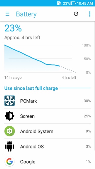 Bagaimana tidak, berdasarkan aplikasi PCMark, ZenFone 4 Selfie Lite sukses mencatatkan waktu hingga 14 jam 23 menit dengan baterai tersisa 20% (dari baterai 100%). Sementara ketika digunakan untuk pemakaian biasa seperti main game, berselancar di media sosial, ZenFone 4 Selfie Lite mampu bertahan kurang lebih 14 jam dengan screen on-time selama 10 jam 58 menit dan 8 detik.