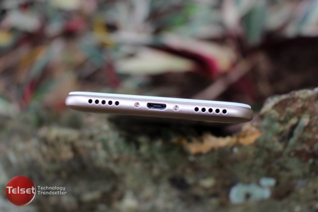 Karenanya, desain bagian bawah smartphone ini pun berbeda. Terdapat port micro USB yang diapit oleh dua speaker. Tapi ini bukan speaker stereo, karena yang berfungsi hanya speaker di sebelah kanannya saja. Sedangkan untuk bagian kiri, mungkin lubang speaker tersebut berfungsi sebagai microphone.