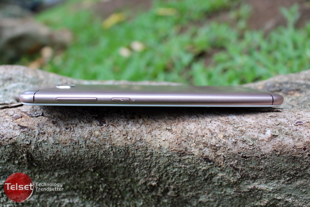 Pindah ke sisi kanannya, terdapat tombol volume dan juga tombol power yang memiliki tekstur garis-garis yang memberikan kesan “wah”. Sedangkan di sisi kirinya, terdapat slot SIM 1 dan SIM 2 kemudian juga tempat microSD.