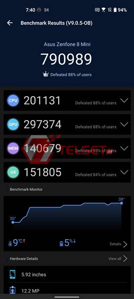 Sudah pasti, smartphone ini menyuguhkan kinerja yang di atas rata-rata. Dari pengujian kami menggunakan AnTuTu Benchmark versi 9, Asus Zenfone 8 meraih skor 790 ribuan poin. Skor ini pun membuat kami memberikan julukan “Samson Mini” untuk Asus Zenfone 8.
