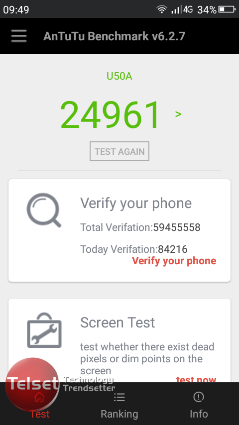 Saat kami tes menggunakan Antutu Benchmark, ponsel ini berhasil meraih angka 24961. Cukup mengagumkan untuk ponsel dengan spesifikasi tersebut.