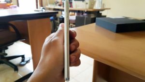 Sementara itu, di bagiak sisi kanan, hanya terdapat slot kartu SIM yang digabung dengan slot memori. Sedangkan untuk sisi kiri, hanya terdapat tombol Power dan Volume saja.