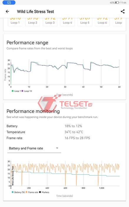Sedangkan untuk Wild Life Stress Test, memperoleh skor tertinggi 3.810 poin dengan stabilitas 99,2%. Rata-rata frame rate yang diraih berkisar antara 16 FPS sampai 28 FPS. Hasil yang sangat bagus untuk sebuah tablet dengan mesin “jadul”.