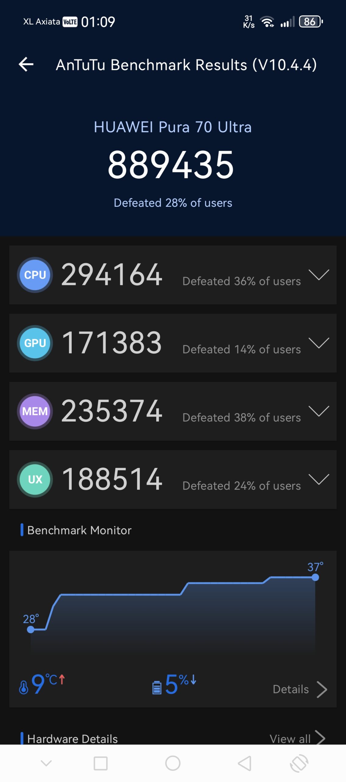 Sayangnya, dibandingkan Snapdragon 8 Gen 3 atau Dimensity 9400, Kirin 9010 masih sedikit tertinggal, terutama dalam hal efisiensi daya dan kecepatan pemrosesan AI hingga ketika dipakai main game. Sebagai gambaran kalian bisa melihat beberapa hasil pengujian di aplikasi benchmarking ini: