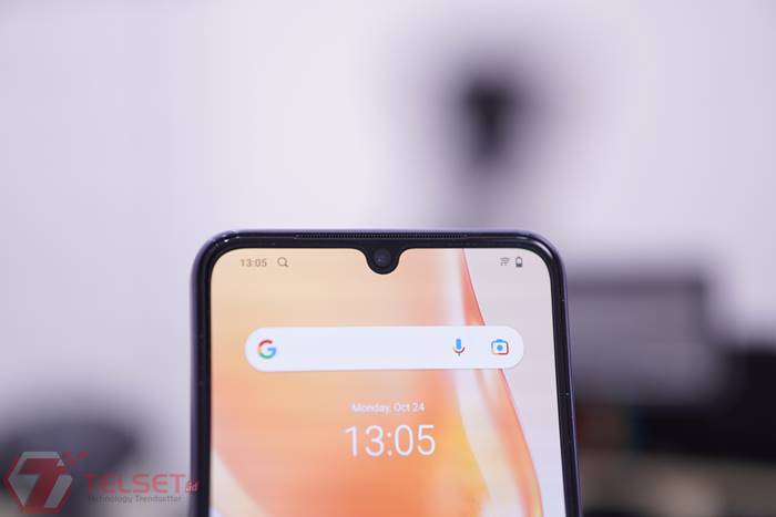 Layarnya juga mendukung teknologi pemindai sidik jari atau fingerprint, serta kamera depan dengan konsep water drop. Sementara di sisi kanan, ada tombol On/Off layar dan pengatur volume. Bagian atas dan kiri, mulus dan bagian bawah ada slot untuk 2 SIM Card dan 1 MicroSD, port USB Type-C, dan speaker.