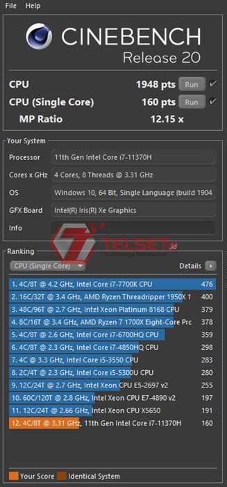 Sama halnya dengan Cinebench R20. Tes single-core dan multi-core mendapatkan skor masing-masing 160 poin dan 1.948 poin. But at the end, ini hanya gambaran performa secara angka saja. Sebab, laptop ini terasa gesit untuk pemakaian sehari-hari di berbagai skenario penggunaan.