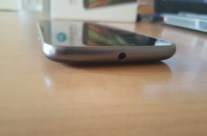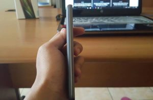 Sementara itu di sisi kanan, hanya terdapat tombol Power dan Volume. Tidak ada slot kartu SIM atau memori yang biasanya kita temukan pada smartphone lainnya karena di Moto E3 Power, slot kartu SIM dan microSD diletakkan di dalam body (harus membuka cover belakang terlebih dahulu). Sedangkan untuk sisi kiri tidak ada tombol apapun.