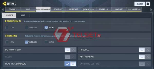 COD Mobile yang kami mainkan hanya dapat diset pada pengaturan grafis High dan frame rate Medium. Grafisnya biasa saja memang, namun jaminan 50 – 60 FPS bisa didapatkan saat bermain game ini.