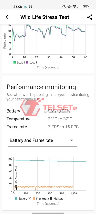 Sedangkan untuk mengetahui kinerja dari GPU Mali-G68 MP4, kami menggunakan aplikasi 3DMark dengan menggunakan skema Wild Life dan Wild Life Stress Test.