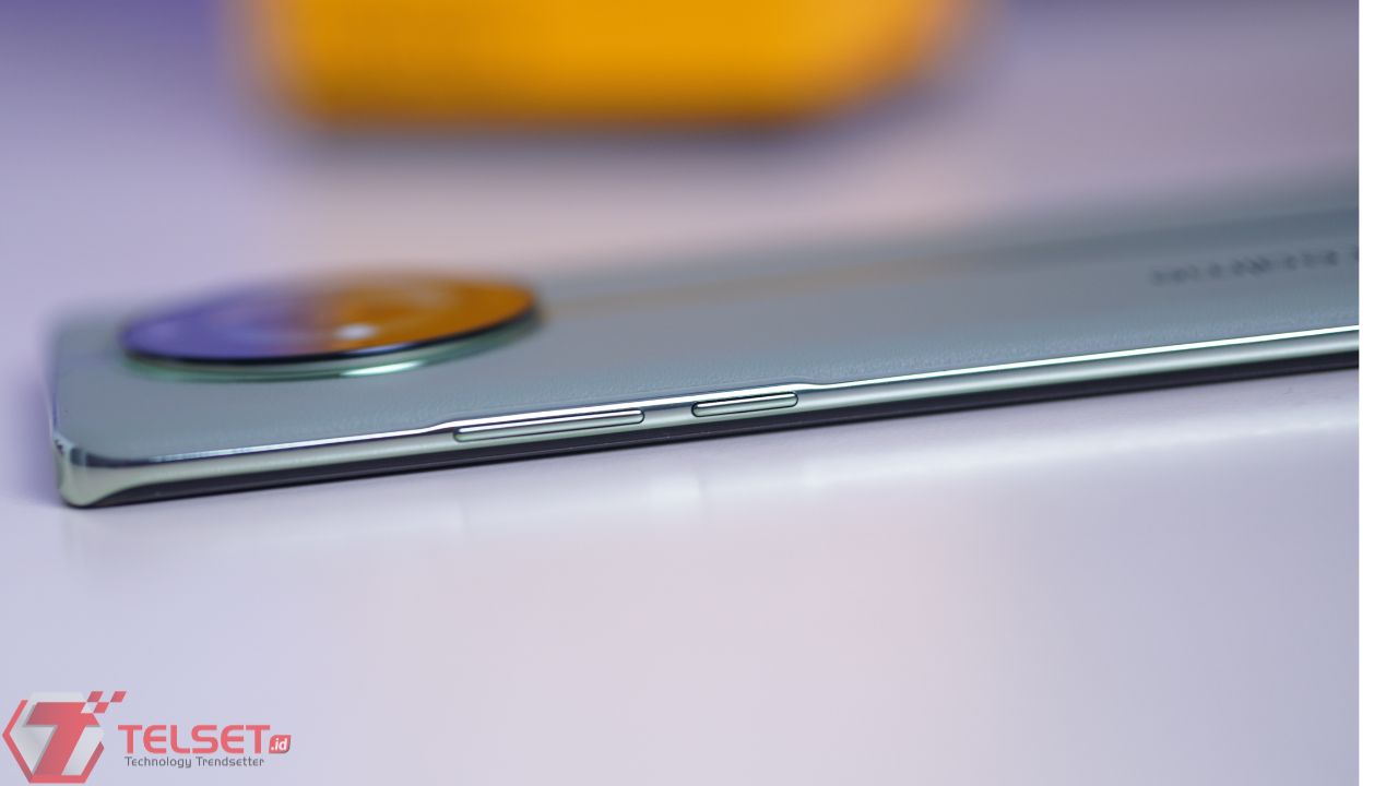 HP ini memiliki frame plastik dengan finishing glossy yang memperkuat feel premiumnya. Untuk kelengkapan port, realme mengosongkan bagian kiri, dan memilih menempatkan tombol power dan volume di bagian kanan.