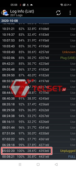 Pengujian lainnya adalah memutar video YouTube tanpa henti dan mencatatnya menggunakan Battery Log. Smartphone ini bisa bertahan sampai 19,5 jam sampai baterai habis mencapai 0%.