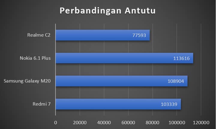 Kami juga coba mengambil parameter angka dengan menggunakan benchmark AnTuTu. Skor yang diperoleh adalah 77593. Ini memang lebih rendah dibandingkan dengan Redmi 7 yang memiliki skor 103339.
