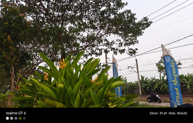 Di sektor fotografi, Realme GT 6 yang kami review memiliki spesifikasi dual camera di bagian belakang. Kamera utamanya menggunakan kamera 50MP dengan sensor Sony LYT-606 yang memiliki fitur OIS, dan kamera portrait dengan sensor JN5 yang punya kemamluan Zoom 2x. Di bagian depannya tersedia kamera selfie 32MP.