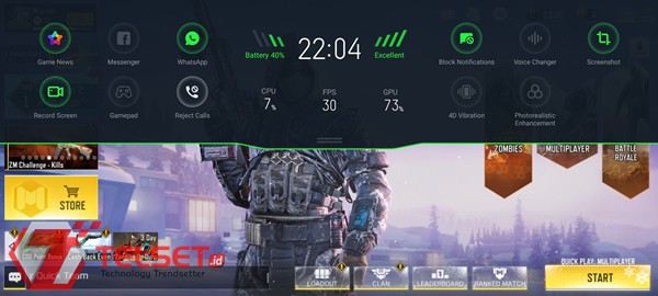 Oh ya, apabila Anda swipe layar dari sudut kanan atau kiri atas layar, maka akan muncul jendela notifikasi ala smartphone gaming, yang memungkinkan Anda untuk menyesuaikan beberapa pengaturan, sampai mengetahui kondisi smartphone secara real-time.