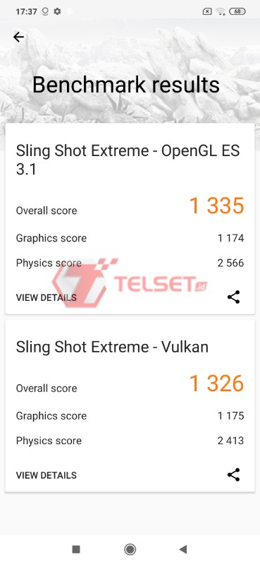 Hasilnya, Redmi 9 berhasil meraih skor sebesar 1.737 untuk tes Sling Shot dan 1.335 Sling Shot Extreme OpenGL, serta 1.329 untuk Sling Shot Extreme Vulkan.