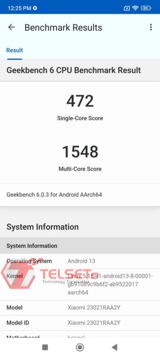 Selanjutnya, kami mencoba smartphone ini dalam pengujian Geekbench 6. Hasilnya, perangkat mendapatkan skor 472 poin untuk single-core, dan skor 1548 poin untuk multi-core. Dari pengujian ini bisa dibilang CPU-nya memang masih cukup memumpuni di kelas harga 2 jutaan untuk sekadar menjalankan berbagai aplikasi.