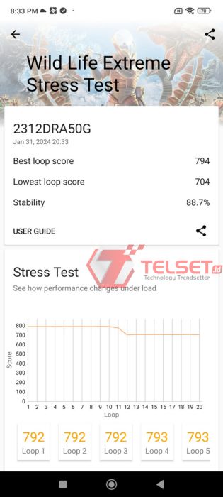 - Wild Life Extreme Stress Test: skor tertinggi 394 dengan tingkat kestabilan 88.7%
