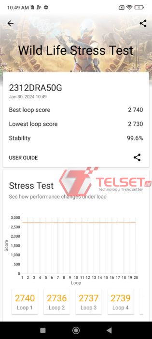 - Wild Life Stress Test: skor tertinggi 2.740 dengan tingkat kestabilan 99.6%