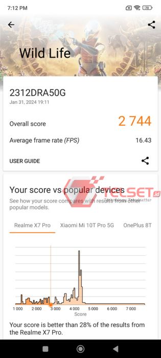 - Wild Life: skor rata-rata 2.744 dengan 16,43 FPS