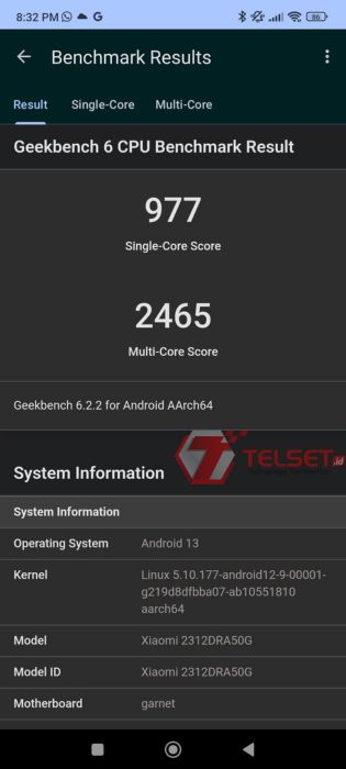 Untuk pengujian Geekbench Redmi Note 13 Pro 5G yang kami review ini berhasil mendapatkan skor 977 poin untuk single-core, sedangkan untuk multi-core mendapatkan skor 2.465 poin. Skor ini menggambarkan bahwa performa CPU perangkat yang masih termasuk cukup oke.