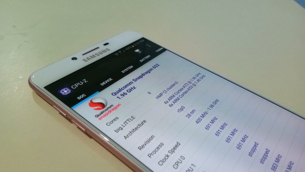 Ponsel ini dibekali dengan spesifikasi yang menurut kami sangat mumpuni. Bagaimana tidak, Samsung menyematkan CPU sekelas Qualcomm Snapdragon 652 dengan GPU Adreno 510 kedalam ponsel ini.