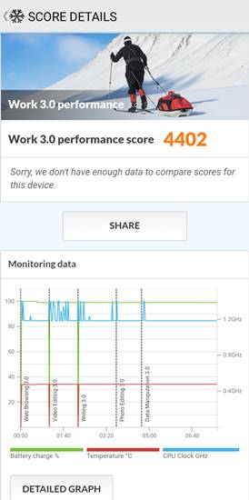 Ketika diuji melalui aplikasi PC Mark, data memperlihatkan kalau Samsung Galaxy A03 Core performanya kurang maksimal karena mendapatkan skor di bawah 5000 poin yakni 4402 poin.