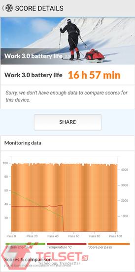 Pada review Samsung Galaxy A03 Core, kami juga menguji performa baterai. Dengan menggunakan aplikasi PC Mark ternyata HP baterai 5.000 mAh ini menawarkan performa screen on time selama 16 jam 57 menit.
