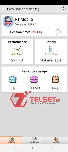 Kami juga menjajal kemampuan Galaxy A70 menggunakan GameBench untuk menakar performa smartphone ketika memainkan 3 game terberat Android, seperti PUBG Mobile, F1 Mobile dan Need for Speed No Limits. Hasilnya, smartphone mampu menjalankan ketiganya secara lancar dengan rata-rata 29 – 30 Fps.