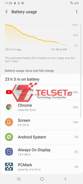 Sekarang bahas soal baterai. Kami kerap berbicara soal smartphone yang bikin pegal untuk menghabiskan baterainya, dan Samsung Galaxy A70 jadi salah satu smartphone itu. Berkat baterainya yang besar, Galaxy A70 bisa menemani serangkaian aktivitas kami selama 23 jam lebih, dengan baterai tersisa 10 % dan screen on time 9 jam 24 menit.