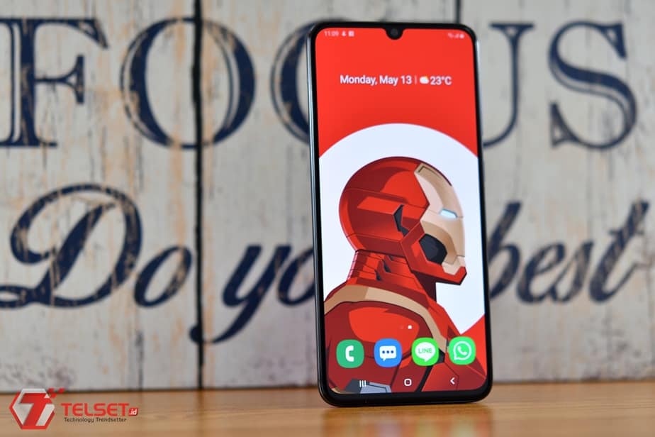 Itu juga berlaku bagi Samsung Galaxy A70. Di Bagian depan, kami mendapati desain mainstream yang sering kami temui di sebagian besar smartphone yang beredar di Indonesia.
