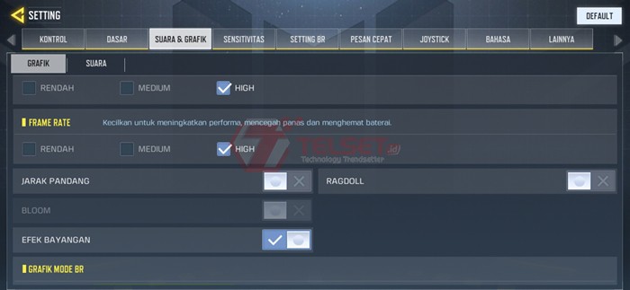 Untuk pengaturan Smooth Extreme akan menampilkan gambar dengan kualitas standar, namun dengan FPS tinggi yaitu 60FPS. Sedangkan HD ultra, yaitu menampilkan gambar berkualitas HD namun dengan refresh rate 40FPS.