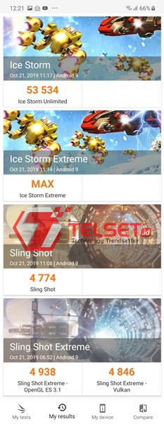 Jadi, 3DMark merupakan benchmark untuk mengukur kinerja grafis serta GPU dan CPU dari smartphone. Ada beberapa pengujian, seperti Sling Shot dan Sling Shot Extreme yang biasa digunakan untuk menjajal kemampuan smartphone flagship dengan tolak ukur OpenGL ES 3.0 (Sling Shot) dan OpenGL ES 3.2 (Sling Shot Extreme).