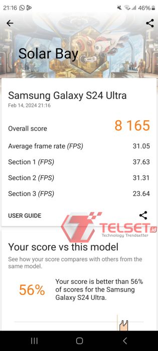 Dalam pengujian 3DMark ponsel ini sudah mendukung Solar Bay yang menandakan ini bisa menjalankan konten 3D dengan fitur Ray Tracing. Lalu untuk hasilnya: